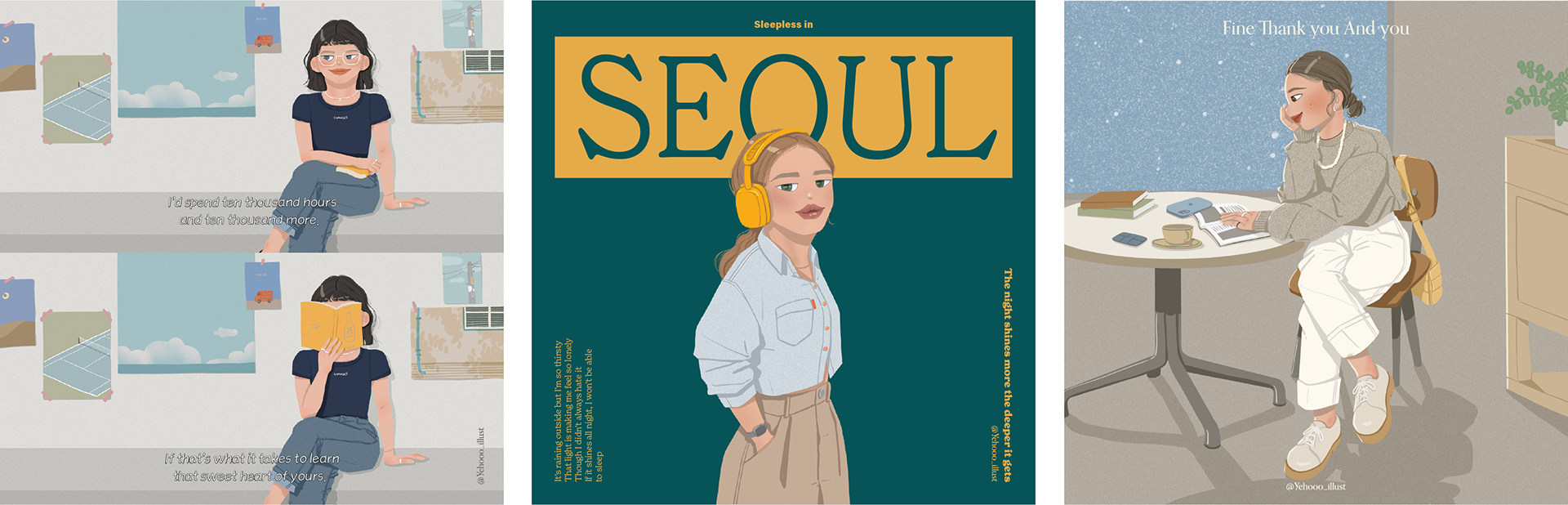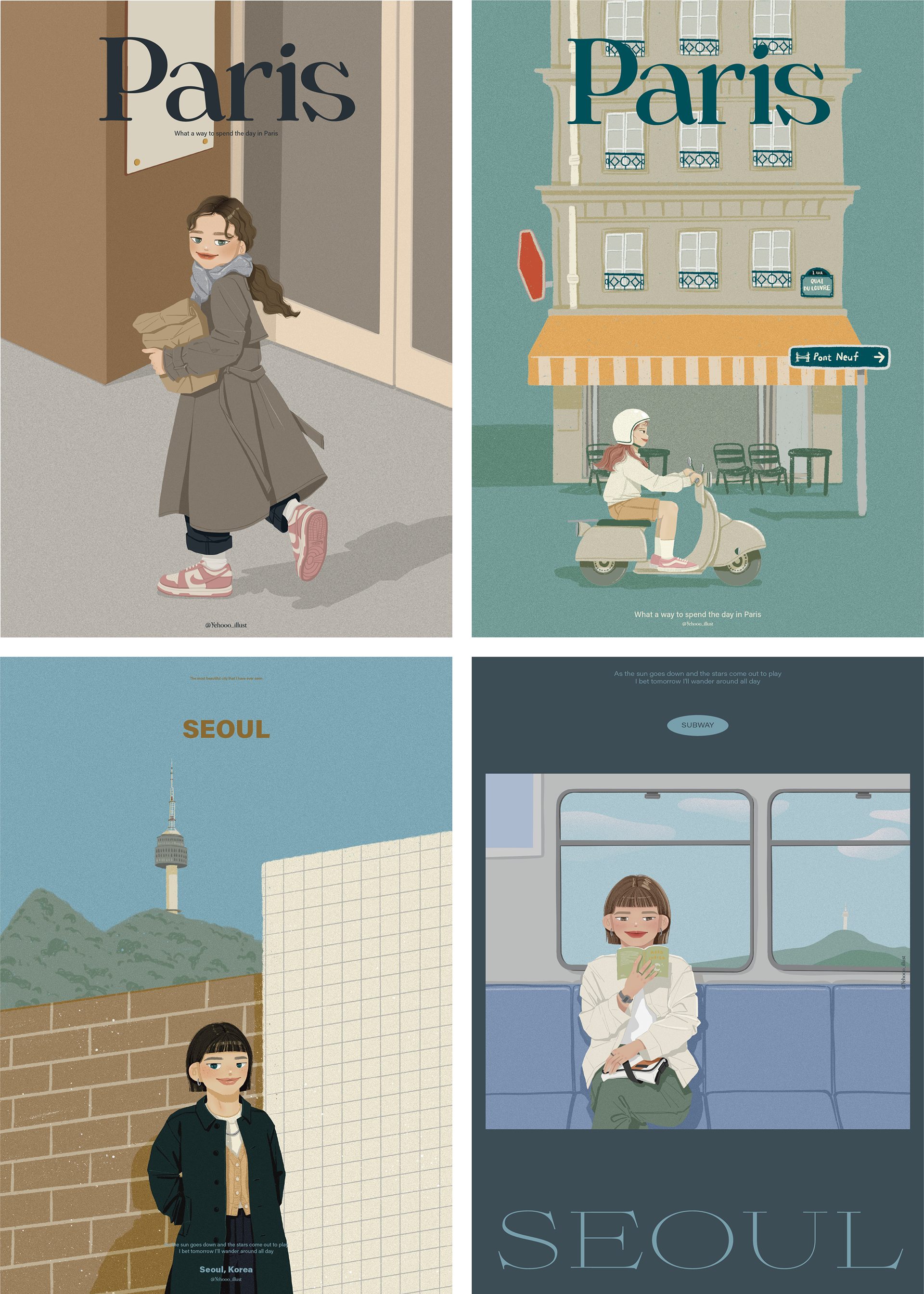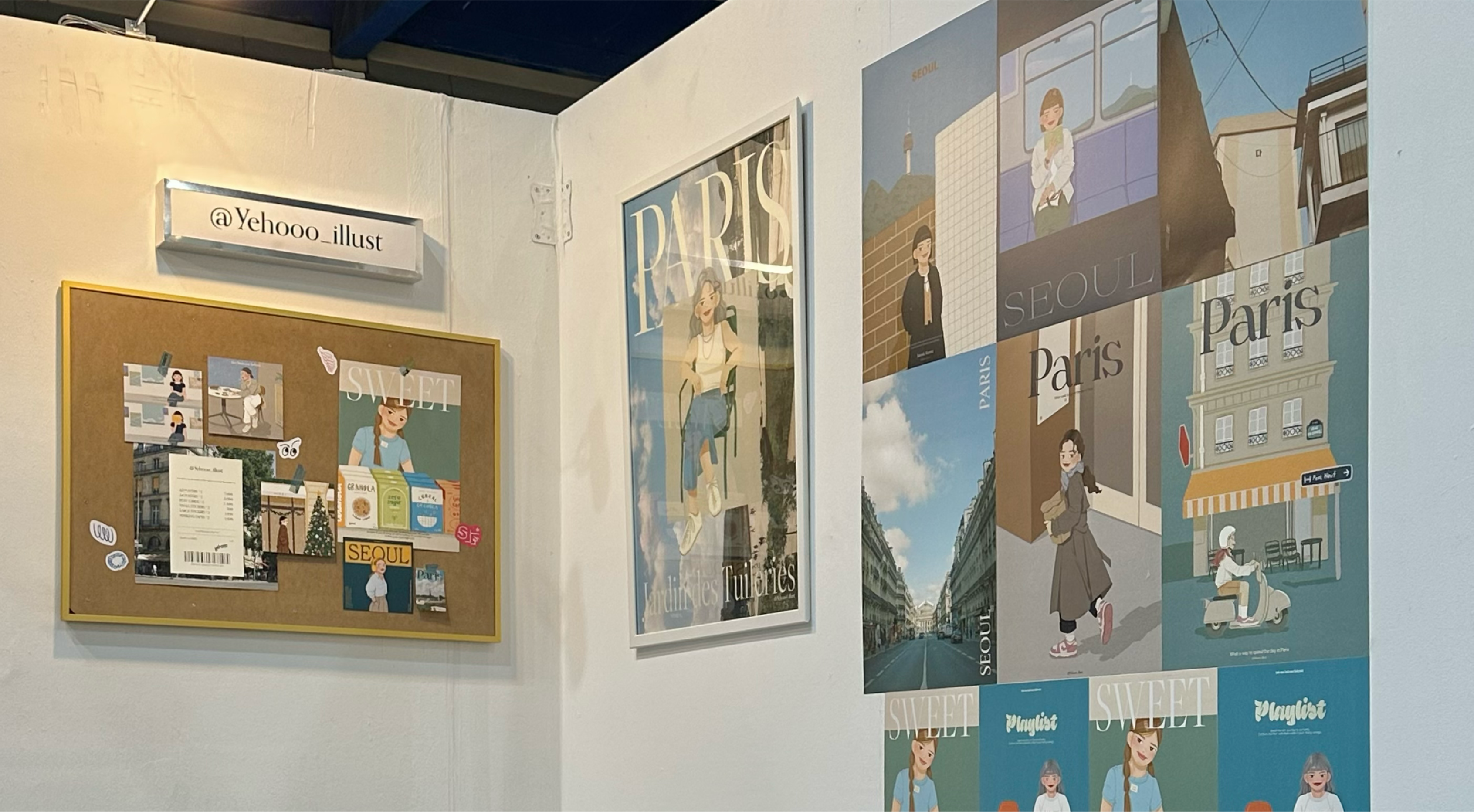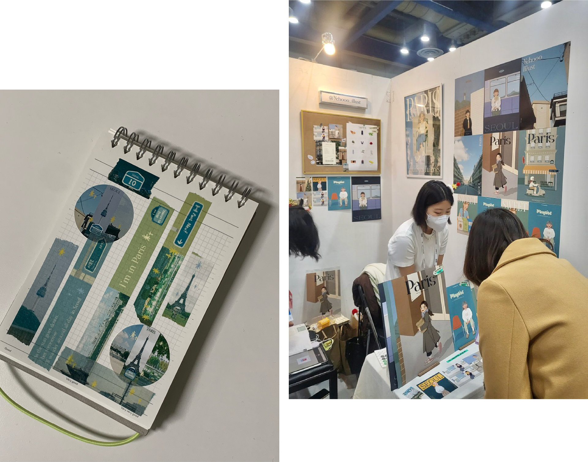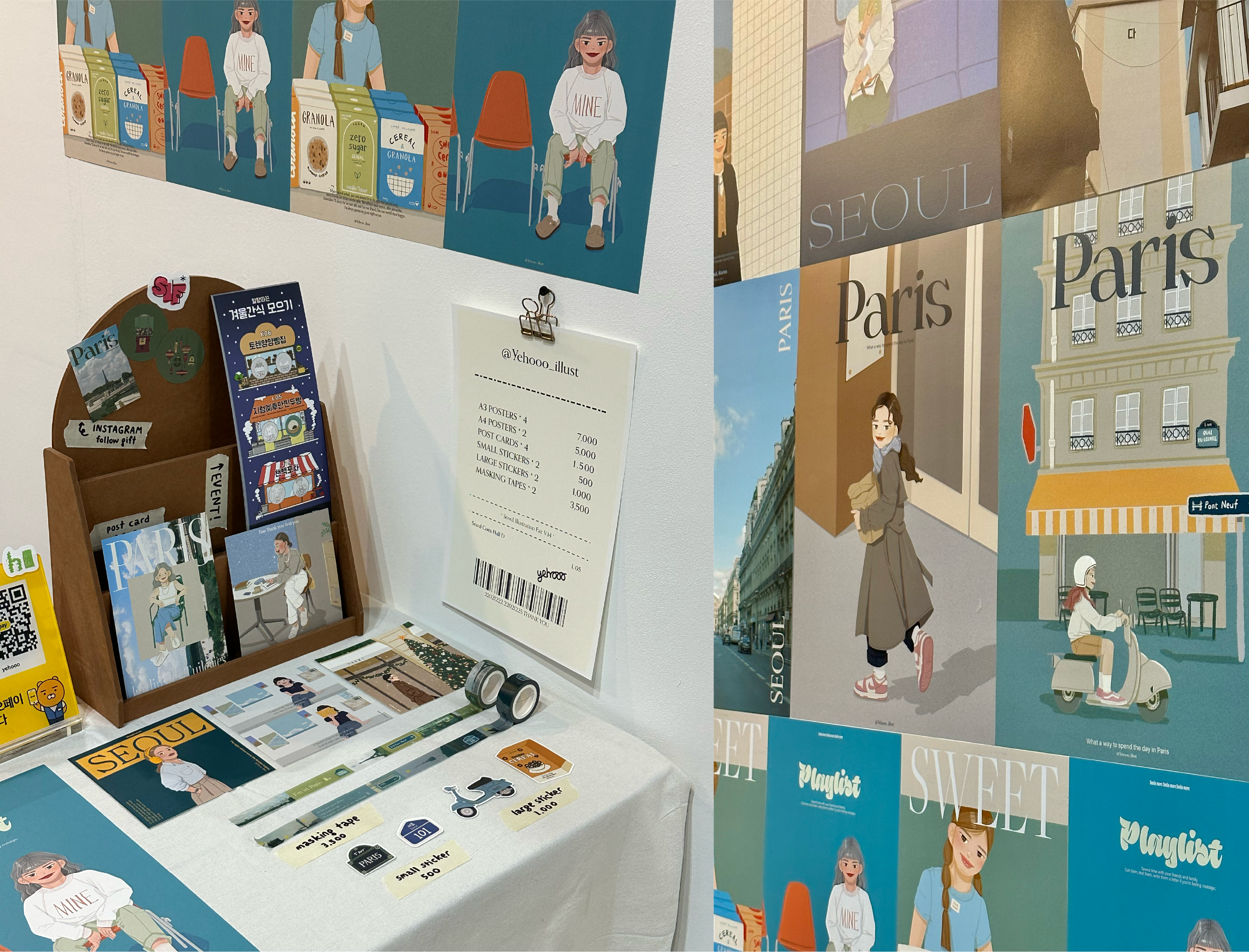 I participated in the Illustration Fair held at COEX Mall in Seoul. I created illustrations inspired by my city, Seoul, and my most memorable travel destination, Paris. These illustrations were used to design posters, stickers, and masking tapes.